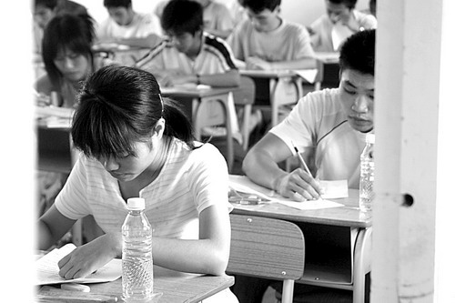 資料圖片:我們的教育必須尋求適度學(xué)習(xí)負(fù)擔(dān)與學(xué)生全面發(fā)展間的平衡,而解決之道在于大力推行素質(zhì)教育。圖為考場(chǎng)內(nèi)的高考考生。
