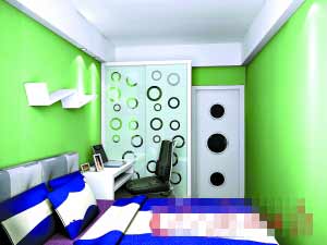 兒童房的設(shè)計(jì)很巧妙,鉛筆被涂成了草地的綠色,彰顯著運(yùn)動(dòng)的張力。除了主色調(diào)之外,其他地方的設(shè)計(jì)也強(qiáng)調(diào)著孩子的個(gè)性。衣櫥采用的是磨砂的藝術(shù)光化玻璃。衣櫥的圓形圖案則使整個(gè)房間活潑起來(lái)。臥室的門雖然是玻璃,但這種不透明的玻璃卻保證了孩子的隱私。
