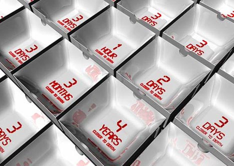 這是第一款把稱重的概念引入到煙灰缸里的概念設(shè)計。他不僅可以用來存放煙灰,而且還可以通過內(nèi)置的芯片通過您彈入的煙灰計算出您抽煙的習(xí)慣,從而將您因?yàn)槲鼰煻鴾p少的生命顯示在底部。而且您“失去”的生命越多,煙灰缸的顏色就會越暗。
