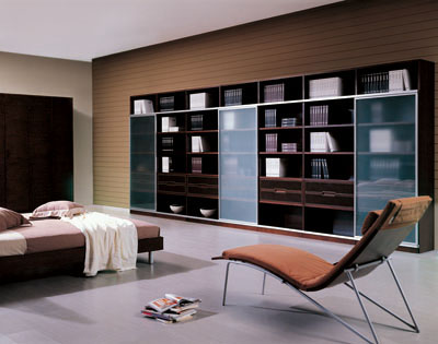 既然書架擺放的位置可隨意性,那么書架的樣貌自然也無需太過拘泥。不規(guī)則分隔是格型書架的初級階段,橫格的間距變化主要是為了擺放不同大小的書籍而考慮的;豎格的交錯排列則不僅可以增加視覺變化,打破普通書架的沉悶,還可以增加大書架的牢度,兼具實用功能;另有升級版本,隔板不再是橫平豎直,各種方向的線條交錯,打破常規(guī),甚至還有設計如流水一般曲折,可以彎轉成一個墻上的圓環(huán)、或順勢環(huán)繞居室四周,書架自身也成為一件造型藝術,同所有家具一樣,關鍵要看怎么去使用它。