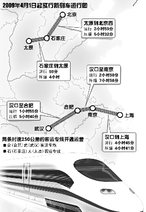 4月1日,全國鐵路開始實行新的列車運行圖,屆時全國新開行動車組41對,整體運能提高10.6%。鐵道部將時速250公里合武客專、石太客專的開行,視為此次調(diào)圖最大的亮點。