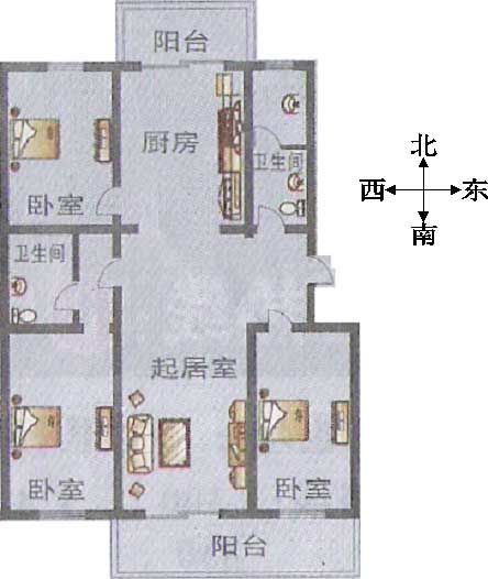 此戶型基本規(guī)范,僅東北角缺位,而且衛(wèi)生間又設(shè)在東北方位,因此該宅不宜少男居住,否則易患呼吸道疾病和消化系統(tǒng)疾病。