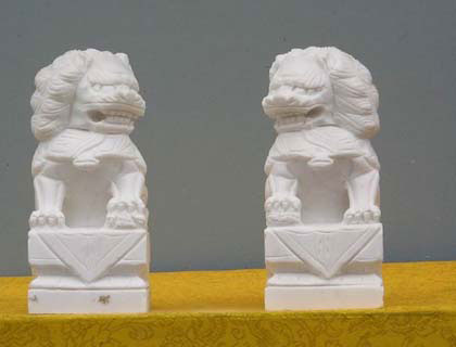 不論是大理石或木頭雕刻而成的獅子,在客廳擺設(shè)一定要成雙成對,一公一母。公者戲球,母弄小獅。面向門外,避邪鎮(zhèn)宅。