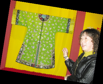 清宮電視劇中,兩把頭扇形冠、旗袍和高跟木鞋,給人們留下了深刻印象。這些服飾真品,此次都一一展現(xiàn)。展廳正中是一件華麗的“百蝶衣”,因為慈禧喜愛蝴蝶。袁榮介紹說,后妃們穿的便裝叫氅衣,咸豐、同治期間,京城貴族婦女衣飾鑲滾花邊的道數(shù)越來越多,有“十八鑲”之稱。這種裝飾風尚,一直到民國期間仍流行。
