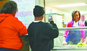 美國(guó)第一夫人到“米里亞姆廚房”做義工,不少流浪者拿出手機(jī)狂拍,讓來(lái)訪的人大感驚奇