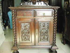 二三十年代,這些中西合璧的老家具,不是人人都用得起的,比如一張2米長(zhǎng)1米寬的桌子,它是放在客廳一角,專(zhuān)給主人看報(bào)紙用的,面積夠大,報(bào)紙可以完全攤開(kāi),看起來(lái)方便,這樣的家具只有在大資本家大買(mǎi)辦的豪宅里才會(huì)出現(xiàn)。消費(fèi)群小,量就小,物以稀為貴,所以它也就很值錢(qián)了。