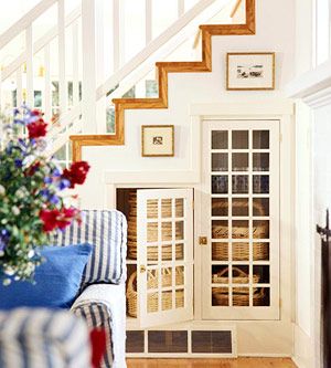 要想讓你的視聽(tīng)區(qū)域看上去很大,那就要把電視機(jī)塞到樓梯下面的空間去。這樣的話,就可以不占用居室內(nèi)的空間,為你騰出更多坐立區(qū)域。記得在樓梯下所設(shè)計(jì)的收納柜,除了電視機(jī),還要能塞進(jìn)立體音響、DVD播放器、CD播放器等。