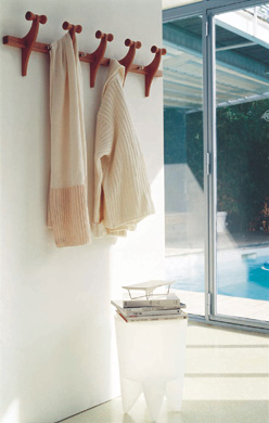 圖三:只懸掛一排衣帽鉤恐怕是最簡單的玄關(guān)布置了,加一張小凳子便可坐下休息,化解了出門的緊張與匆忙時尚七種玄關(guān)。