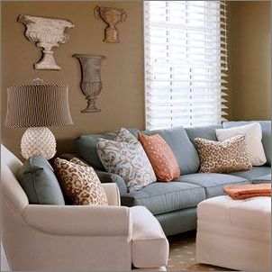 在流行裝飾榜上,藍色和褐色總是成對的出現(xiàn),但你一定要找到適合自己口味的搭配。如果你喜歡平淡一點的顏色,那么可以嘗試奶油咖啡色和法式藍色,同時搭配傳統(tǒng)一點的家具,比如背景墻和靠墊一類的東西,這些便宜的東西可以輕易地變更與裝飾的趨勢。