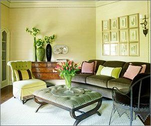 翠綠色的這個客廳讓人眼前一亮,綠色冷淡的墻壁作為背景,綠色的花瓶、枕頭以及三葉草花,再搭配上粉色的靠墊,空間變得立體豐富起來,有主有次,具有鮮明的層次感。