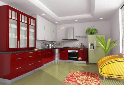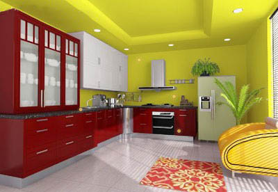 紅色:熱情奔放,充滿喜慶的色彩。年輕的新婚夫妻采用紅色最為貼切,不僅能體現(xiàn)出主人強(qiáng)烈,大膽的個(gè)性,更能展現(xiàn)青年生機(jī)勃勃的朝氣,顯示華貴。另據(jù)測試,紅色能使食欲達(dá)到高峰。紅如朝陽,白如軟玉的紅白相間組合,利用白的溫和稍稍沖淡紅色造成的單調(diào)感覺,使整體更富變化,更有生氣,如圖案例一。紅與黃的搭配有一種壓得住的熱烈,輔以老式家具喜慶吉祥的用色手法,會(huì)使櫥柜顯出一派欣欣向榮的新氣象,如圖案例二。