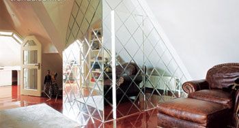 平白的一面鏡子待在一處墻面上就不如加以分割后拼接的裝飾效果強,不僅達到了反射光線的目的,還能增加平直空間的趣味性。