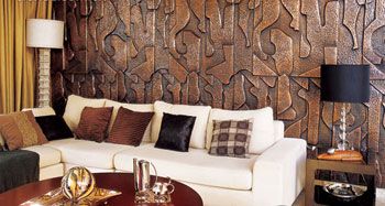 奇特的材質(zhì)雖然能出位,卻應該更加謹慎地嘗試。比如金屬材質(zhì)或是鏡面作為客廳里的一處墻面,如果沒有與家具及整體風格做出很好的溝通,反而會讓另類的創(chuàng)意變得混亂而粗鄙。鏡面的反射作用是很多家居設計中喜愛它的原因之一,但切忌平白的大面積使用,那樣會讓會客區(qū)變成練功房一樣的無味;金屬墻面聽起來沉重、冰冷和壓抑,但若是一幅輕薄靈巧的鐵畫或是分量感十足的壁畫,則是另一番風趣。想辦法去設計那些平時不敢、但值得嘗試的材料,通常都會有更新的思路被開拓出來。