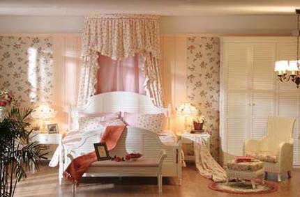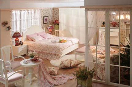 大量使用清新淡雅的顏色、柔美嬌嫩的花朵圖案,是使居室顯得更為浪漫的常用方法,這樣的床上用品多年來(lái)一直也是人們家居布置的首選參考方案。