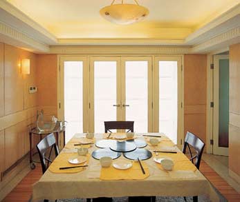 玄關(guān)隔屏用鞋柜取代。為了不讓來(lái)客一眼就看到客廳,屋主一直希望入門處能做玄關(guān)隔屏??剂康綄?shí)用及預(yù)算,設(shè)計(jì)師建議用鞋柜代替。雖然鞋柜的價(jià)格比玄關(guān)隔屏來(lái)得貴,但卻比較實(shí)用,最重要也省了玄關(guān)隔屏的費(fèi)用。