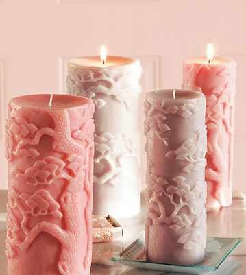 花朵,這個(gè)春天的使者還呈現(xiàn)在蠟燭上。除色彩和雕花的相得益彰外,還為房間營造了寧靜祥和的溫馨氣氛。柔情脈脈的燭光,也拉近了彼此之間的距離。