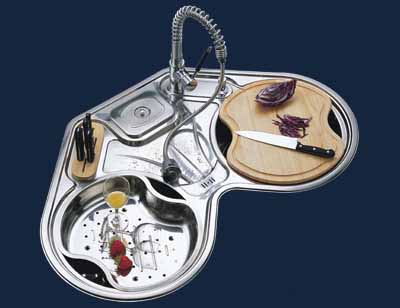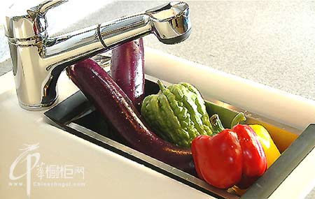 在現(xiàn)代廚房設(shè)計(jì)中,水槽的功能被明顯拓展,如水槽和櫥柜相接的地方被開拓出一塊工作區(qū),使水槽連帶了儲(chǔ)物功能。