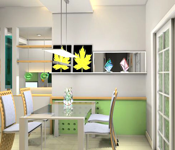 5、在入門對(duì)面的墻壁上掛上一面大鏡子,可以映射出全屋的景象,似乎使客廳擴(kuò)大了一倍,或在狹長(zhǎng)的房間兩側(cè)裝上玻璃。