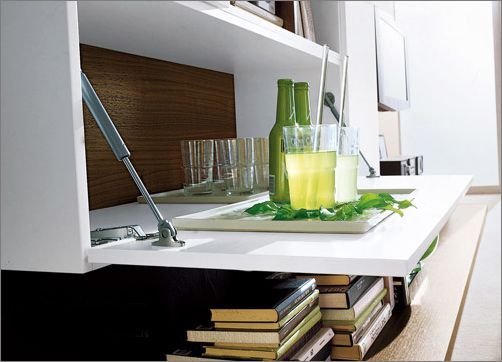 廳柜可以包含多種功能,翻下折板還可以享受休閑的暢飲時間。