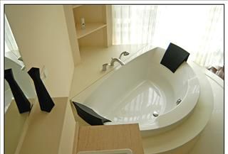 隨著水流的不斷循環(huán)、噴沖,仿佛一雙溫柔有力的手在疲勞的身體上點(diǎn)壓按捏,引領(lǐng)著你躺上一張溫暖“水床”。浴缸的造型不再是傳統(tǒng)的橢圓型,出現(xiàn)了如圓形、心形、扇形、鉆石形等等。浴缸內(nèi)部也不再是一片空蕩蕩的白瓷世界,靠墊、扶手以及各種貼合人體**的設(shè)計(jì),使浴缸看起來(lái)如同一件精雕細(xì)鏤的藝術(shù)品。
