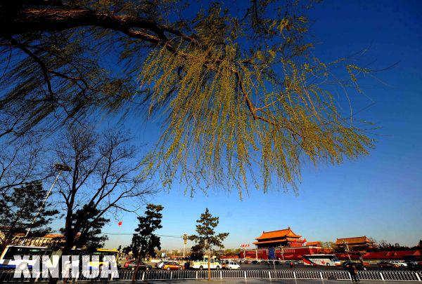 北京市交通發(fā)展研究中心4月2日發(fā)布的評估報告表明,“每周少開一天車”限行措施實施半年以來,北京交通擁堵狀況改善明顯;北京市環(huán)保局同時發(fā)布的空氣質(zhì)量監(jiān)測數(shù)據(jù)顯示,限行期間,北京市空氣質(zhì)量整體呈好轉(zhuǎn)趨勢,每日機(jī)動車污染物排放量減少375噸。民意調(diào)查顯示,80%以上的有車者支持限行政策長期實施。圖為4月1日清晨拍攝的藍(lán)天綠樹掩映下的天安門。