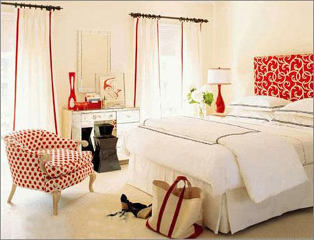 2.整個臥室以白色打底,點(diǎn)綴入鮮艷的紅色家居,頓時有了“萬綠叢中一點(diǎn)紅”的驚艷。