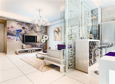 采用下半部封閉、上半部開放或通透式的博古架(俗稱花架子),架子上陳列盆景和工藝品,這樣既能營造藝術(shù)氣氛,又能使居室的其他房間在視覺上若隱若現(xiàn),起到隔而不斷的作用。