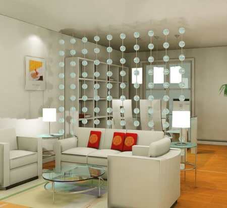 最簡單的做法,是用一個(gè)珠簾或者紗簾裝在沙發(fā)后面,這樣既能做到隔斷,又不會對通風(fēng)和采光造成影響。這種方法既簡單而且便宜,又極富時(shí)尚感。