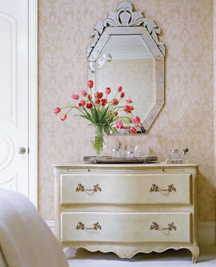 為了讓臥室增添柔美氣質(zhì),你還可以通過(guò)使用簡(jiǎn)單而素雅的淡綠色和奶油色,巧妙地將臥室?guī)胍粋€(gè)寧?kù)o的空間。而英式的花緞壁紙則顯得平和而親切,這是涂料粉刷所達(dá)不到的效果。在家具的選擇上,你可以不必用家具和配飾來(lái)填充空間,選擇幾件體形不大的家具,通過(guò)獨(dú)立擺放就會(huì)讓臥室顯得精致而優(yōu)雅。
