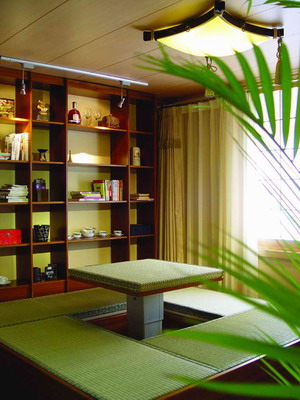 在架空于地面之上的榻榻米上做文章是個另類的想法。不過誰見了這樣的升降桌都會為它實用而巧妙的構(gòu)思而叫好。當(dāng)桌子隱藏在地面中的時候,榻榻米上一片平整,可以睡覺、練習(xí)瑜伽。而當(dāng)按下機關(guān)讓桌子緩緩升起之后,這里就變成了可以吃飯、工作,甚至和朋友打牌的好地方。