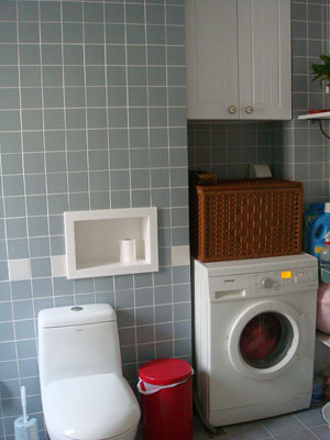 在只有四五平方米左右的小衛(wèi)浴間中,淋浴器、馬桶、洗臉臺已經(jīng)占據(jù)了不少面積,所以要做到干濕分離并不容易,消費者要根據(jù)實際情況來選擇浴室柜??蛇x吊掛在墻角的或是離地面較高的浴柜,這樣往上層空間發(fā)展,也可以有效地利用起小空間。
