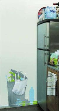 功能轉(zhuǎn)換:在特定環(huán)境的墻上配上相應(yīng)的圖案,如電冰箱旁的垃圾桶,垃圾桶是圖案,配上垃圾袋,儼然一個“保潔區(qū)”。