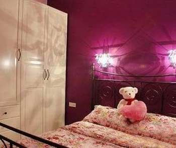 臥室內(nèi)家具本來就不多,因此除了婚床之外,梳妝臺和床頭柜的布置也要細心留意,鮮花起到了活躍氣氛的作用,而相架則是兩人甜蜜的見證。