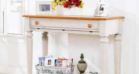 古典款式的玄關桌可以彰顯此處的典雅感覺,抽屜可以收納小物品。