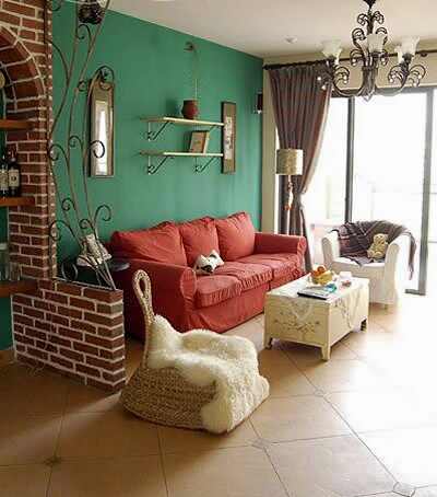 對(duì)比色具跳動(dòng)感,紅墻綠沙發(fā),強(qiáng)調(diào)了沙發(fā)的形狀,很跳但容易看膩,一般建議不能多用,只能使用在重點(diǎn)區(qū)域。