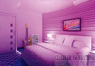 紫色,給人的感覺似乎是沉靜的、脆弱纖細(xì)的,總給人無限浪漫的聯(lián)想,追求時尚的人最推崇紫色。但大面積的紫色會使空間整體色調(diào)變深,從而產(chǎn)生壓抑感。建議不要放在需要?dú)g快氣氛的居室內(nèi)或孩子的房間中,那樣會使得身在其中的人有一種無奈的感覺。如果真的很喜歡,可以在居室的局部作為裝飾亮點(diǎn),比如臥房的一角、衛(wèi)浴間的帷簾等小地方。