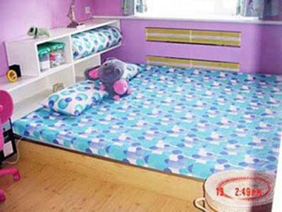由于屋主有2個(gè)女兒,臥房最少也要1張雙人床或2張單人床。設(shè)計(jì)師考量既然要作木地板,不如把地板架高,在地板上擺2張單人床墊,就可以省下2張單人床架的費(fèi)用。架高地板雖然得再加錢(qián),但比起2張床架的錢(qián)還是便宜的。
