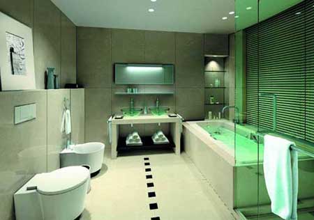 衛(wèi)生間的設計基本上以方便、安全、易于清洗及美觀得體為主。由于衛(wèi)生間的水氣很重,內(nèi)部裝潢用料必須以防水材料為主。浴室的墻壁和天花板所占面積最大,所以應選擇既防水又抗腐蝕和防霉的材料來確保室內(nèi)衛(wèi)生,瓷磚、強化板和具防水功能是塑料壁紙都能達到這些要求。天然石料如大理石則具有特殊的質(zhì)感,但可異在狹小的衛(wèi)生間內(nèi)發(fā)揮不了效果。