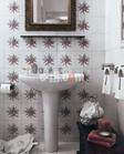 冷靜并不代表冷酷,畢竟衛(wèi)浴間是一個放松身心的地方,也需要溫柔和感性。白色墻磚上的圖案與整體風(fēng)格相配,使單調(diào)的墻面變得豐富起來。