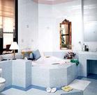 彩色地磚是突出的設(shè)計,粉色、藍色與粉紅色自然過渡,穿插裝飾,整個色彩環(huán)境讓人感受到一種溫暖和舒爽,并搭配同色系的浴室配件,呈現(xiàn)出獨具魅力的女性氣質(zhì)。
