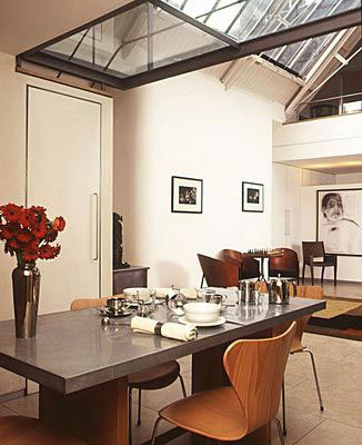 和朋友在一起聚會的時候,親自下廚也是一種樂趣。于是,一個能看得到廚房的餐廳就顯得尤為重要了,在這個開放式的廚房和餐廳里,廚房和餐廳被合二為一,節(jié)約了空間。就連餐桌都和櫥柜并在了一起,隨意擺幾把高腳凳,一個類似酒吧的餐廳便呈現(xiàn)出來。