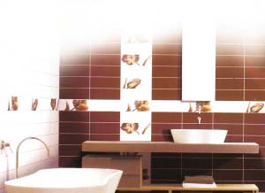 當衛(wèi)浴間面積比較大的時候,就出現(xiàn)“主題墻”這個名詞,所謂主題墻就是空間中最引人注目的一面墻,采用各種設(shè)計手段來突出主人的個性特點。此時你可以通過整套的花磚鋪出圖案,讓你的衛(wèi)浴間變成一個有故事的地方。 三組花磚組成情景