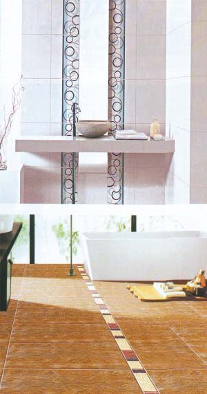 腰線可以用于地面,花樣多變的腰線打破了大磚單調(diào)乏味的局面,賦予地面靈活生動的感覺,為家居帶來新鮮感和美感。另外腰線還可以起到劃分空間的作用,同樣是在衛(wèi)浴間,通過腰線的設(shè)計,可以劃分出相對獨立的功能區(qū),不必再用家具來劃分空間。