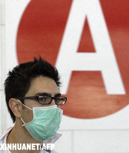 4月27日,在西班牙巴塞羅那,一名來自墨西哥的乘客戴著口罩抵達(dá)巴塞羅那機(jī)場。西班牙衛(wèi)生部27日確認(rèn)該國第一例人感染豬流感病例。 新華社/法新