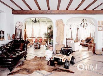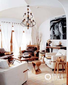 一進門,目光首先被客廳正中央一座大理石雕像吸引,雕像圓潤豐滿的身體,華麗的衣褶,是一尊高大優(yōu)美的歐洲女神像。她在客廳里那樣引人注目,好像她周身發(fā)出淡然的光韻。那是華瑩在西班牙旅行的時候發(fā)現(xiàn)的古董,她一下就被這個優(yōu)美的女神吸引了,并且不遠萬里運了回來,請她守護自己的家。女神雍容典雅的韻美,為這個家?guī)硪环N從容淡定的貴族氣,女神像在這個客廳里,低調(diào)地昭示著主人的身份,她也像一個鎮(zhèn)宅之寶,從而確定了這個家的地中海式風格。