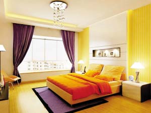 家具的色彩在整個房間色調(diào)中所占的地位很重要,對臥室內(nèi)的裝飾效果起著決定性作用,因此不能忽視。家具色彩一般既要符合個人愛好、更要注意與房間的大小、室內(nèi)光線的明暗相結(jié)合,并且要與墻、地面的色彩相協(xié)調(diào),但又不能太相近,不然沒有相互襯托,也不能產(chǎn)生良好的效果。對于較小的、光線差的房間,不宜選擇太冷的色調(diào);大房間、朝陽的,可以有比較多的選擇。另外,應(yīng)考慮到不同面積不同功能的房間色彩可有不同,因而所產(chǎn)生的效果不同。如淺色家具(包括淺灰、淺米黃、淺褐色等)可使房間產(chǎn)生寧靜、典雅、清幽的氣氛,且能擴大空間感,使房間明亮爽潔;而中等深色家具(包括中黃色、橙色等)色彩較鮮艷,可使房間顯得活潑明快。此外,臥室光線不宜太強,因為床是靜息之所,強光會使人心境不寧,所以室內(nèi)最好用柔和的白熾燈來照明,而盡量少用日光燈。