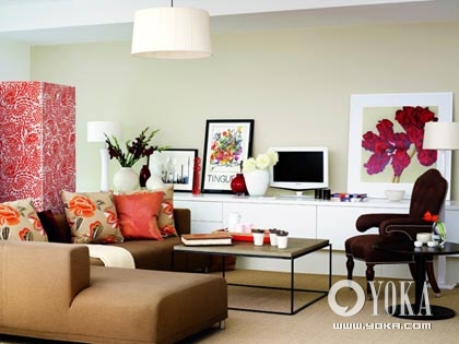 a.在空間允許的情況下,最好把一整面墻留給電視矮柜,用來收藏DVD影片等零散物品。矮柜上面是留給自己發(fā)揮創(chuàng)意的展示區(qū)域。