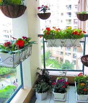 在陽臺上種花栽草也要有巧妙的搭配,否則其效果就會像野草一樣雜亂無章。陽臺的花草園地,既要便于澆水和管理,又要使各種花卉都能充分吸收到陽光?;ú莸姆胖靡灿性E竅,通常有鑲嵌式、垂掛式、階梯式和自然式四種?!拌偳妒健币话阌迷谝呀?jīng)裝修而且面積較小的陽臺上,利用墻壁鑲嵌特制的半邊花瓶式花盆,然后栽種觀葉植物。“垂掛式”是用小巧精致的容器栽種吊蘭等小型植物,然后懸掛在陽臺頂板上。也可栽植藤蔓或其他有纏繞能力的觀葉植物懸掛在陽臺外。“階梯式”是在陽臺內(nèi)搭起階梯,進(jìn)行立體盆花布置,一般的植物都可利用這種形式栽培。“自然式”利用陽臺外的盆架栽種一些木本藤蔓植物,使植物自然下垂,形成一種自然景觀。