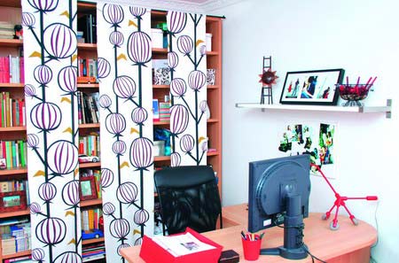 窗簾的效果很漂亮,應景又時尚,大葉子讓紅色變得很活潑。