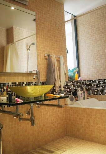 與喜歡細(xì)膩風(fēng)格的人相對(duì),喜歡色彩艷麗大圖案的人也有了個(gè)性化的選擇,用大面積花片代替腰線,除了花色的沖擊力更為強(qiáng)烈以外,不同的拼裝方式也能讓人眼前一亮??筛鶕?jù)使用者的喜好,選擇不同瓷磚,做出藝術(shù)的排列組合,創(chuàng)造出個(gè)性化的設(shè)計(jì)。